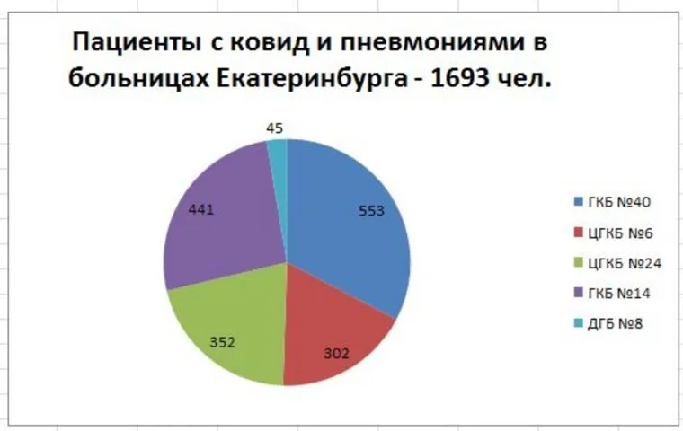 В стационарах Екатеринбурга на данный момент находится 1734 пациента, из них 1255 пациентов с COVID-19 (жители города — 1131, области и других регионов — 124). Картина по больницам:
