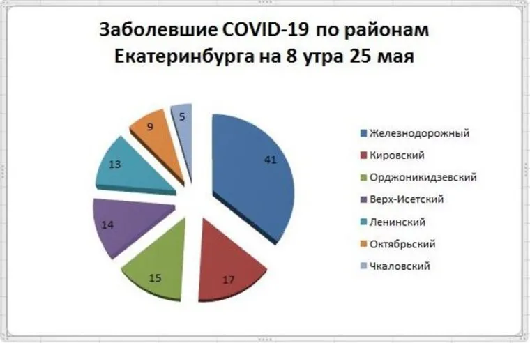 Число заболевших COVID-19 в Екатеринбурге по районам