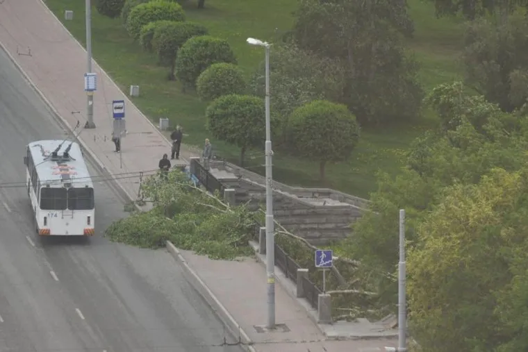 Буря в Екатеринбурге началась в пятом часу вечера. Сильный ветер сопровождается дождем. Из разных концов города начали поступать первые сообщения о рухнувших деревьях, из-за обрыва проводов в некоторых местах остановился электротранспорт.