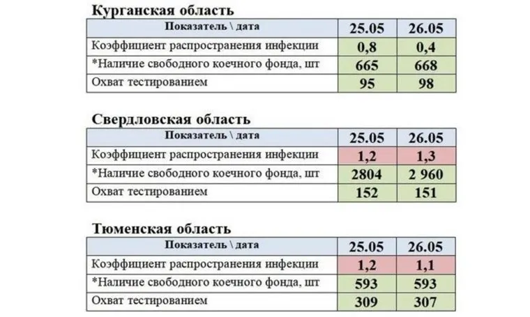 URA.RU сообщало, что полпредство ранее изменило подачу информации о свободном коечном фонде: теперь он дается не в процентах, а в штуках. Во всех регионах по данным на 26 мая критерий свободных мест для ковид-пациентов выполнен.