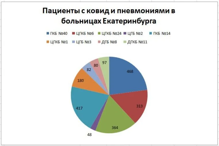 Распределение пациентов с COVID-19 и пневмониями по больницам Екатеринбурга