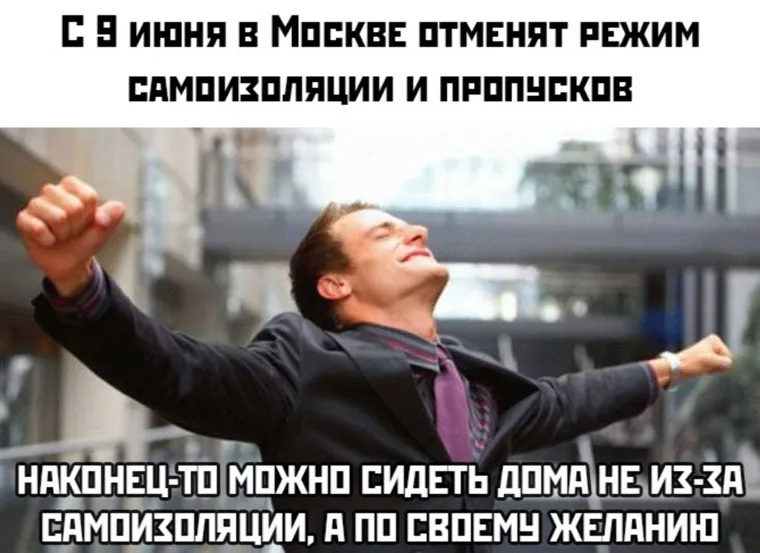 На решение мэра Москвы Сергея Собянина о снятии режима самоизоляции жители столицы отреагировали по-разному. Если одни начали готовиться к долгожданным разрешенным прогулкам, то другие решили выразить весь спектр своих эмоций через мемы. Шедевры творческих и не лишенных иронии россиян — в подборке URA.RU.