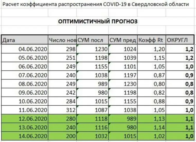 Коэффициент Rt считается как сумма новых случаев заболевания за последние четыре дня, поделенная на сумму новых случаев за предыдущие четыре дня. В последние четыре дня показатели заболеваемости в сутки были 249 человек, 242, 284 и 312, что дает в сумме 1087. В предыдущие четыре заболели 289, 251, 249 и 240 человек, что дает 1029. Результат 1087 делим на 1029 и получаем Rt 1.05.Таким образом на снятие ограничений второго этапа пока рассчитывать не приходится.
