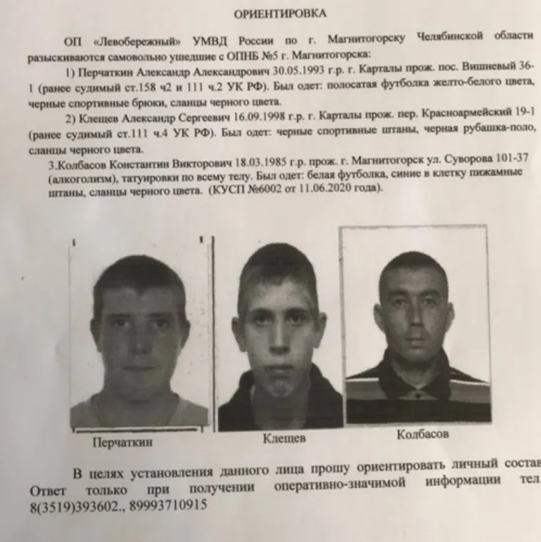 Перчаткин ранее был судим за кражу и умышленное причинение тяжкого вреда здоровью. Клещев — за умышленное причинение тяжкого вреда здоровью, повлекшее по неосторожности смерть потерпевшего. Оба мужчины — из Карталов. Третий сбежавший пациент — магнитогорец.