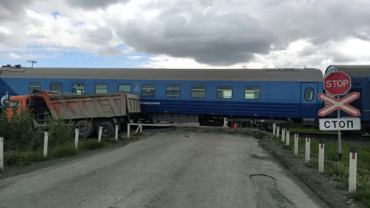 Грузовик протаранил поезд в ЯНАО. ФОТО