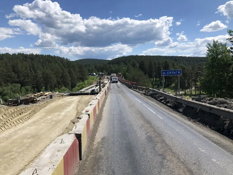 Авария произошла на ремонтируемом участке трассы через реку Сильга.