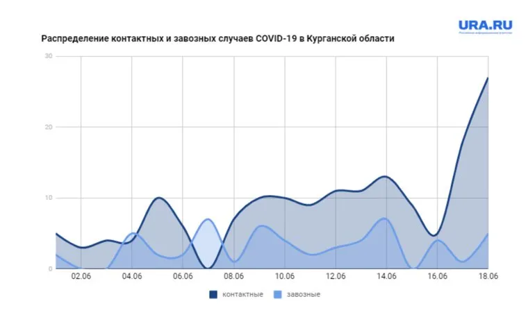 Пять случаев — завозные из Москвы, ХМАО, ЯНАО у жителей Кургана, Куртамышского и Лебяжьевского районов. Остальные 27 случаев — контактные и местные случаи передачи у жителей Кургана, Целинного, Юргамышского, Шадринского, Катайского, Варгашинского и Кетовского районов.