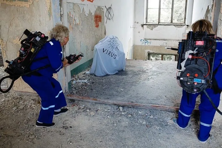 Врачи станции скорой помощи города Коркино в Челябинской области необычно отметили профессиональный праздник — День медика. Они устроили фотосессию в стиле охотников за привидениями — ловили коронавирус. Информация с фото появилась в соцсети «ВКонтакте».