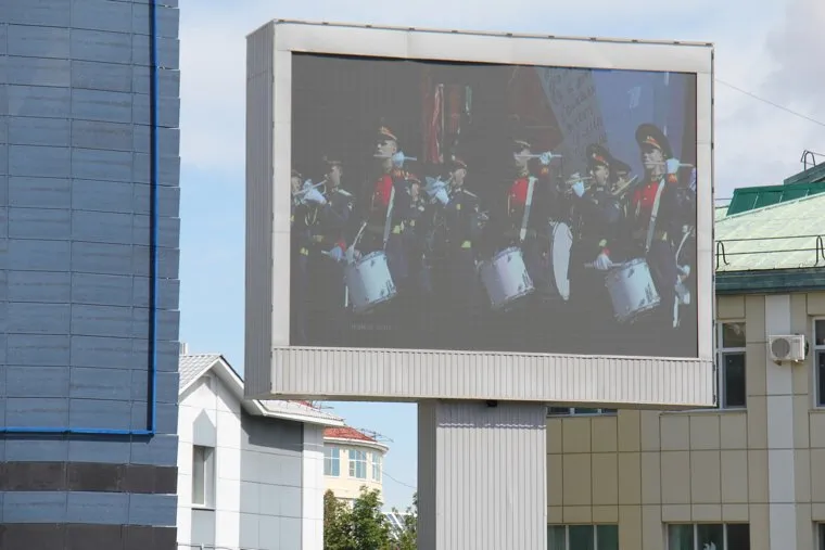 В Ханты-Мансийске прошел автопарад. Также с больших экранов горожанам транслировался парад на Красной площади в Москве.