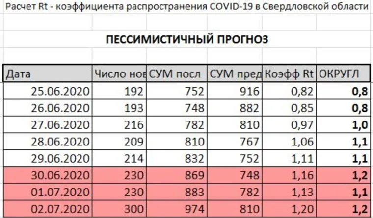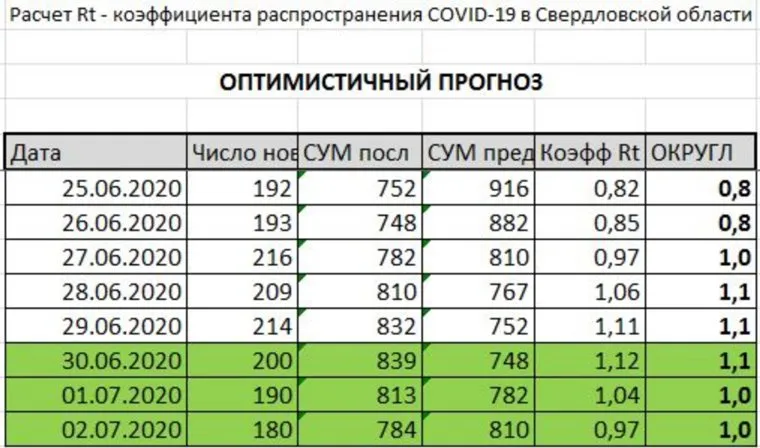 Однако сразу же после ослабления карантина наблюдается рост новых случаев COVID: 27 июня — 216, 28-го — 209, сегодня — 214. Эти цифры портят хорошую статистику прошлой недели: сейчас коэффициент распространения инфекции (Rt) составляет 1,1. Даже если в ближайшие дни число новых случаев будет опустится ниже 200, регион все равно превысит коэффициент Rt в 1,0, что чревато возможной отменой ряда послаблений карантина. Прогноз тем более оправдан, если цифры по заболеваемости в регионе будут сохраняться на текущем уровне или расти (см. ниже ТАБЛИЦЫ с прогнозами).