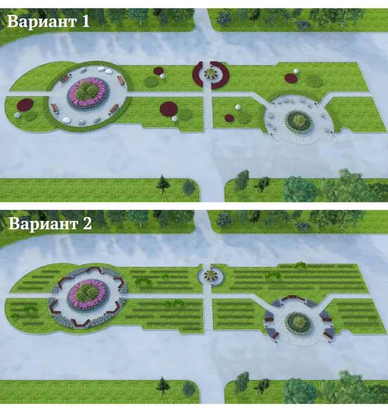 Варианты эскизных решений по обновлению центральной клумбы разработали сотрудники Городского Дома народного творчества совместно со специалистами в сфере ландшафтного дизайна. «Какой вариант, на ваш взгляд, лучше? Выбирайте и делитесь мнением в комментариях!» — написали представители администрации.
