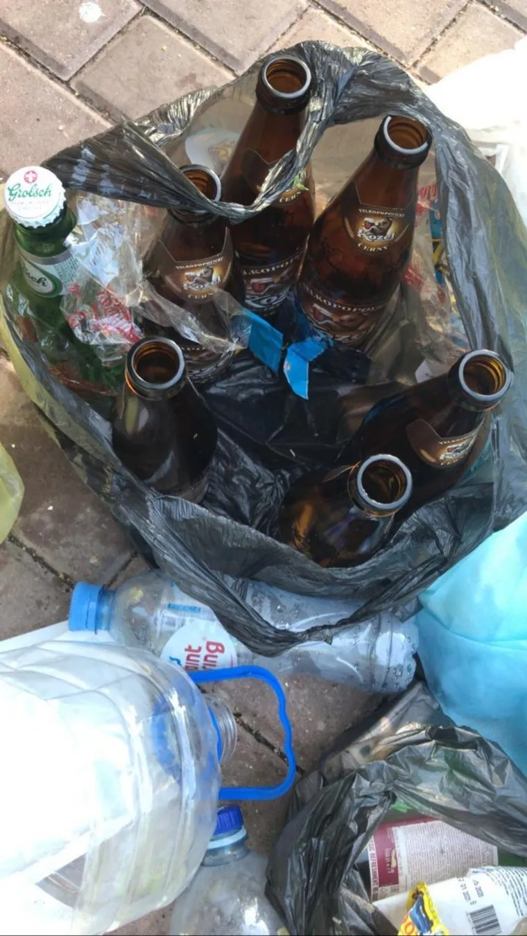 После рабочей смены медики выбрасывают пакеты с бутылками