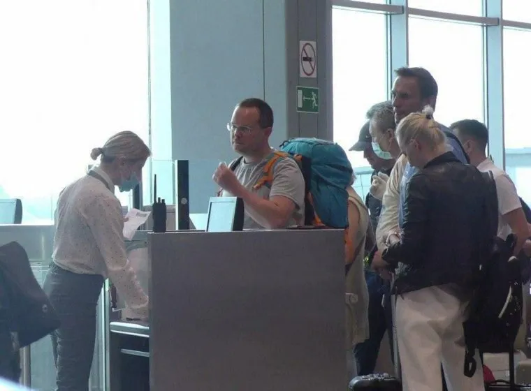 На снимках видно, как блогер проходит паспортный контроль. На другом кадре он выходит из здания аэропорта Храброво в Калининграде.