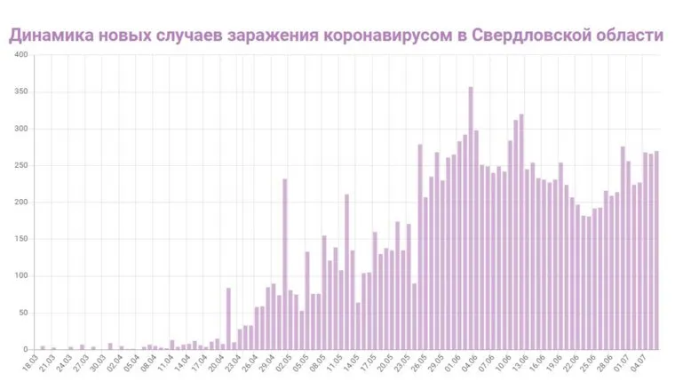Сегодняшний показатель летальности повторяет « рекорд» от 3 июля (тогда тоже было зафиксировано семь смертей от коронавируса в сутки. До этого максимально регистрировалось по шесть летальных исходов ( 1 июля и 2 июля ). Ранее URA.RU сообщало, что из-за высоких цифр по заболеваемости коронавирусной инфекцией санитарные врачи могут ужесточить карантинные меры — потребовать вернуть регион на первый этап снятия ограничений. Также Роспотребнадзор уличил свердловские власти в фальсификации данных по числу новых заболевших COVID-19 — после сверки показателей заместитель свердловского губернатора Павел Креков анонсировал введение новой системы отчетности , на которую должны перейти больницы Екатеринбурга.