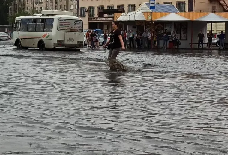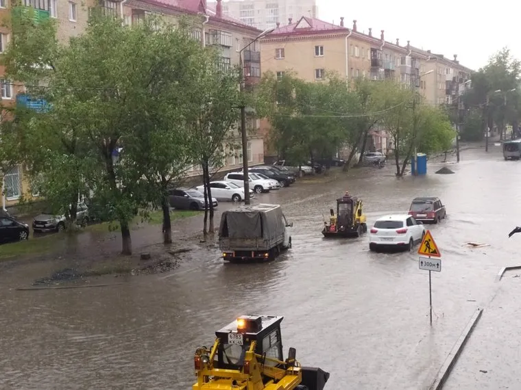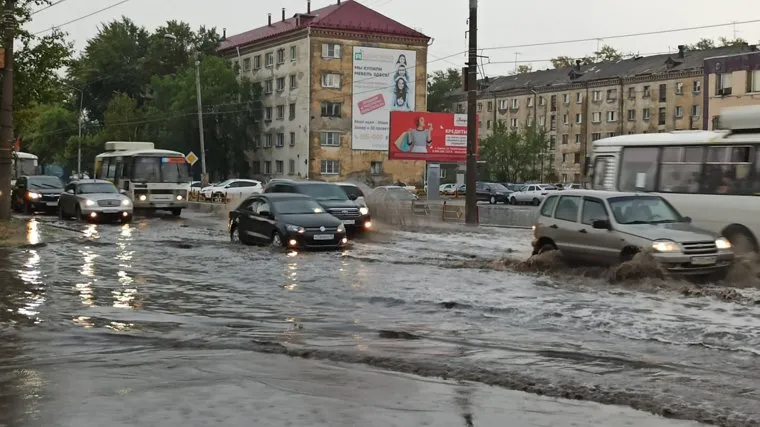 Из-за сильного дождя в Кургане затопило участки проспекта Машиностроителей и улицы Кирова. Об этом сообщили жители города в соцсетях