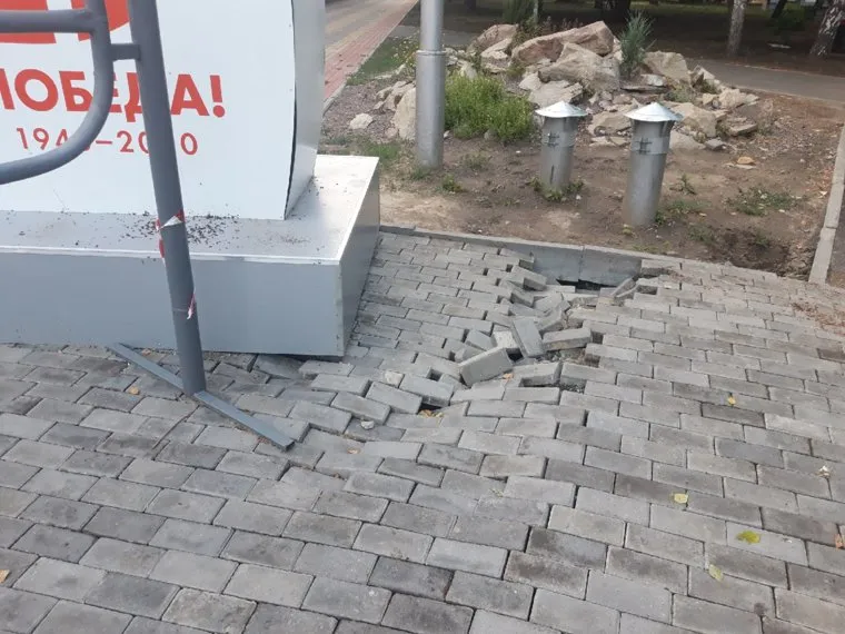После ремонта в парке Кургана начали проваливаться тротуары. ФОТО