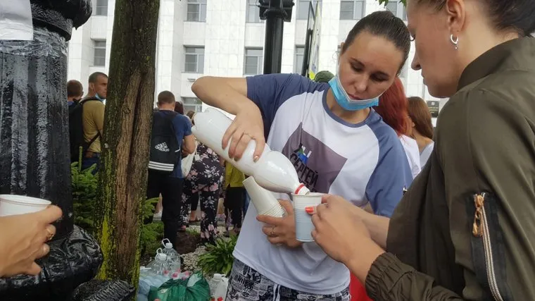 Как передает корреспондент URA.RU с места событий, обстановка на митинге в Хабаровске остается мирной. Шествие по центральным улицам Хабаровска проходило под проливным дождем, после чего люди собрались у здания правительства. При этом автомобилисты выражали протестующим поддержку с помощью сигналов. Митингующие не устраивают беспорядков и скандируют политические лозунги, требуя свободы арестованному экс-губернатору Сергею Фургалу. Они читают саркастичные стихотворения о врио губернатора Михаиле Дегтяреве. По данным корреспондента URA.RU, много митингующих приехало из других регионов Дальнего Востока. При этом в районе протестов не замечено ни одного автозака. Всех протестующих волонтеры поят водой и квасом.