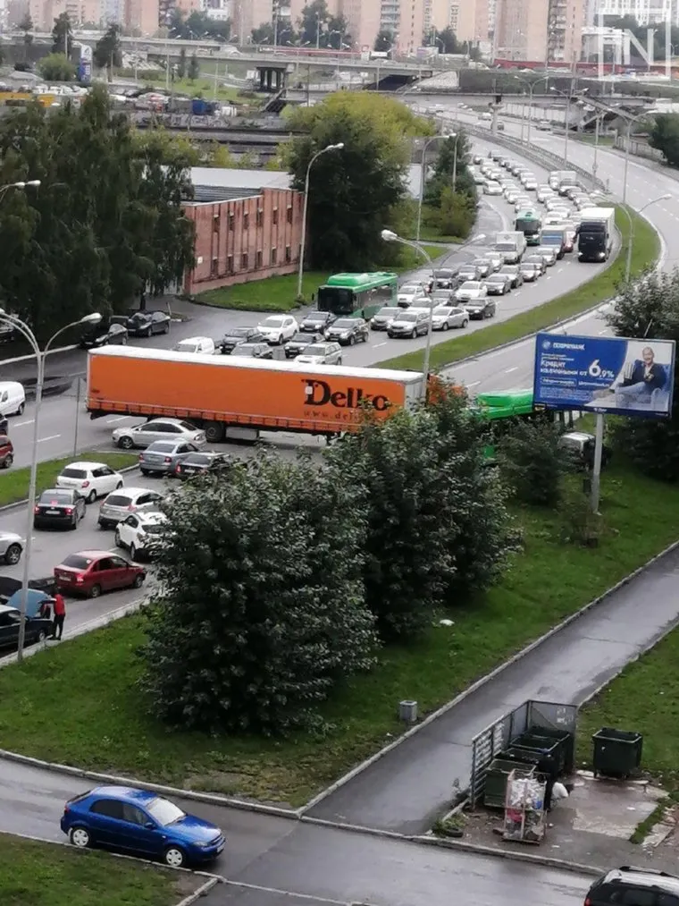 Фура перекрыла транспортную артерию в Екатеринбурге. ФОТО