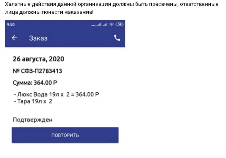 Автор поста в группе «Черное& Белое Магнитогорск» в «ВК» сообщил, что 26 августа им доставили две 19-литровых емкости бренда «Люкс-вода». «Первый бутыль был выпит без последствий. Вчера открыли второй. Вода не стоит на солнце и вблизи горячих предметов, не зацвела и не имела постороннего запаха. Самое страшное, что плохо стало нашему малышу, которому всего год и три, и нашей бабушке. Компания предложила заменить воду, но что-то уже больше не хочется играть в такую рулетку: повезет/не повезет», — говорится в тексте. Также указано, что пост размещен анонимно, поскольку Роспотребнадзор и производитель уже в курсе произошедшего.