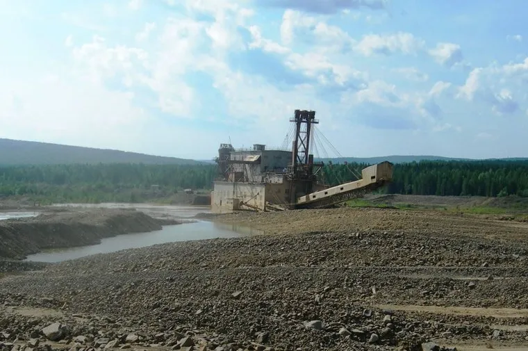 Вот такая драга работала раньше на реке Лобва возле поселка Кытлым. Возможно, такая же громадина загрязняет сейчас Чусовую