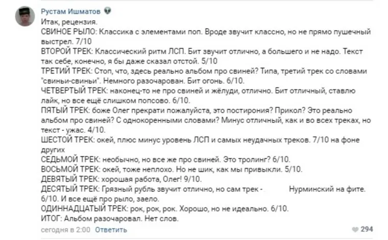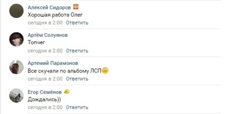 «Хорошая работа, Олег», — один из самых популярных комментариев под выложенным в официальной группе музыканта альбомом. Эта фраза стала локальным мемом для всех поклонников творчества ЛСП.