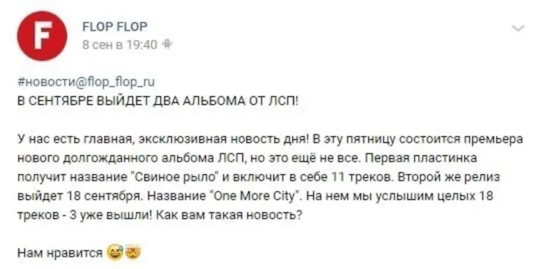 Российский хип-хоп исполнитель Олег «ЛСП» Савченко выпустил первый за три года альбом с неблагозвучным названием «Свиное рыло». Несмотря на то, что певца критиковали за постоянные переносы релиза, в целом его поклонники в социальных сетях отнеслись к новой работе благосклонно.