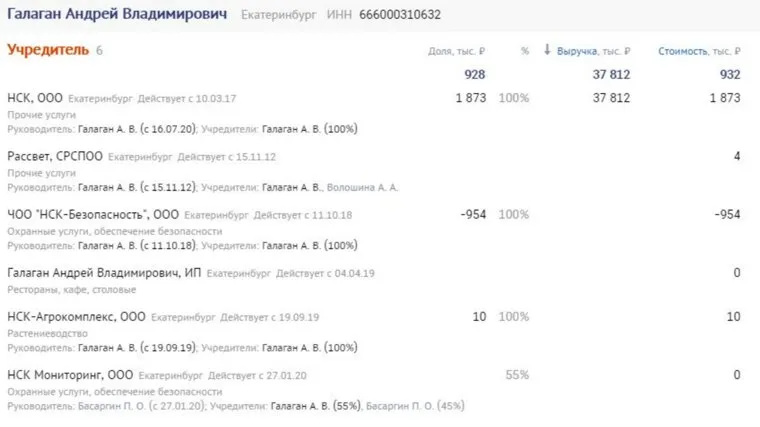 Андрей Галаган — учредитель и директор множества охранных фирм, задействованных в подрядах на объектах, связанных с «АСК». Он регулярно попадает в скандалы из-за конфликтов с жильцами . Так, на днях жители ЖК «Nova Park» обвинили его в избиении активиста , призывавшего сменить управляющую компанию. По словам пострадавшего, когда он разносил по квартирам бюллетени для голосования, Галаган поймал его и избил.