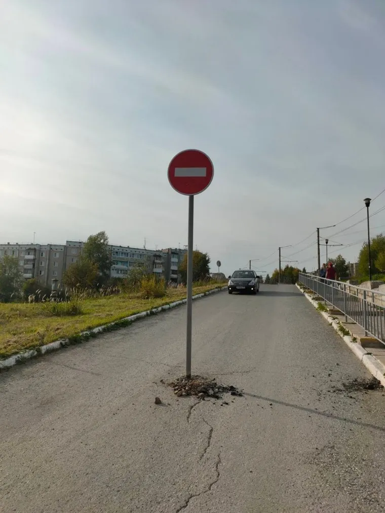 В Пермском крае запрещающий знак установили прямо посреди дороги. ФОТО