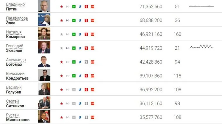 По популярности Комарова уступила только главе ЦИКа и президенту страны