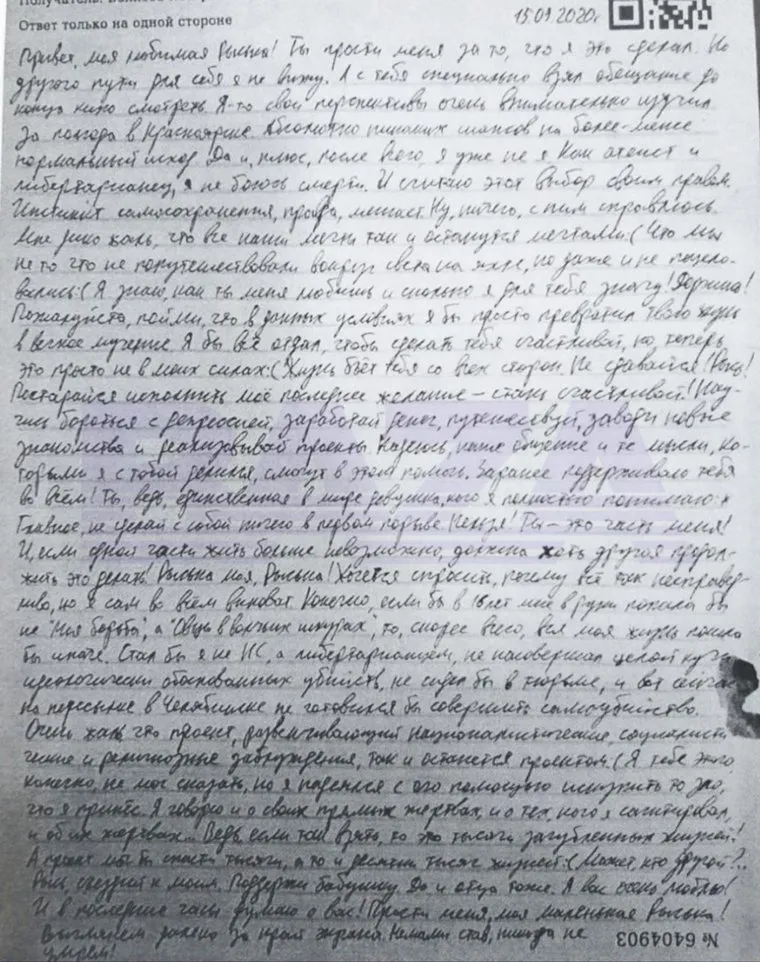 Опубликовано последнее письмо Тесака. СКРИН