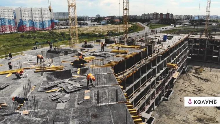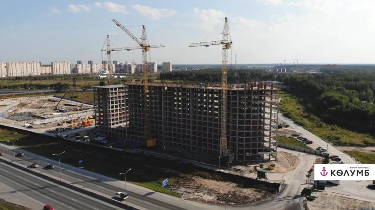 Жилой комплекс «Колумб» строится с марта 2020 года. Сейчас построено уже 13 этажей с каменной укладкой первых трех. Идет монтаж лестничных маршей. Строители забили сваи под третий дом с пятью подъездами. Началось строительство семиэтажного теплого паркинга.