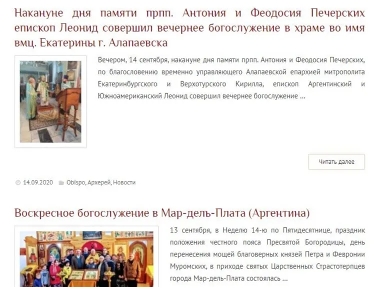 Письма за подписью епископа аргентинского тоже уходят из Алапаевска. Оригинальным стало и наполнение сайта Аргентинской епархии: сообщения о дне трезвости в Кампана-дас-Миссоес и богослужениях в Мар-дель-Плата чередуются с новостями о литургиях в храмах Алапаевска.