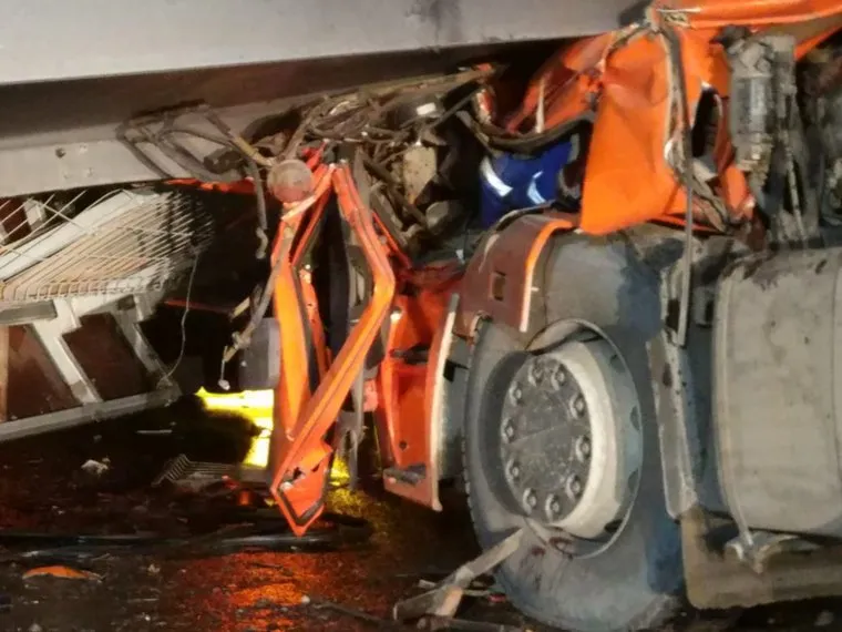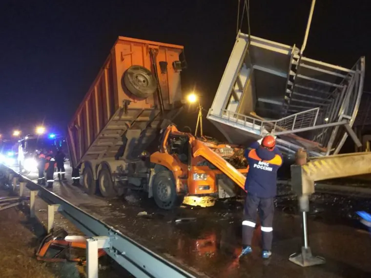 На трассе Челябинск-Екатеринбург рухнул переход, водитель погиб. ФОТО, ВИДЕО