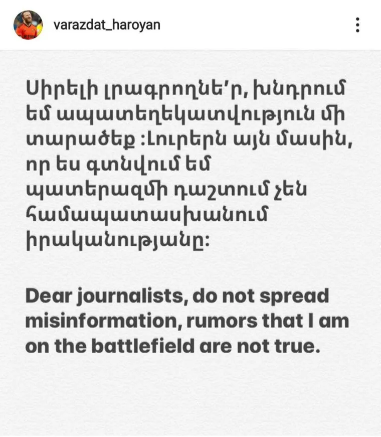 «Дорогие журналисты, не дезинформируйте, слухи о том, что я на поле боя не соответствуют действительности»