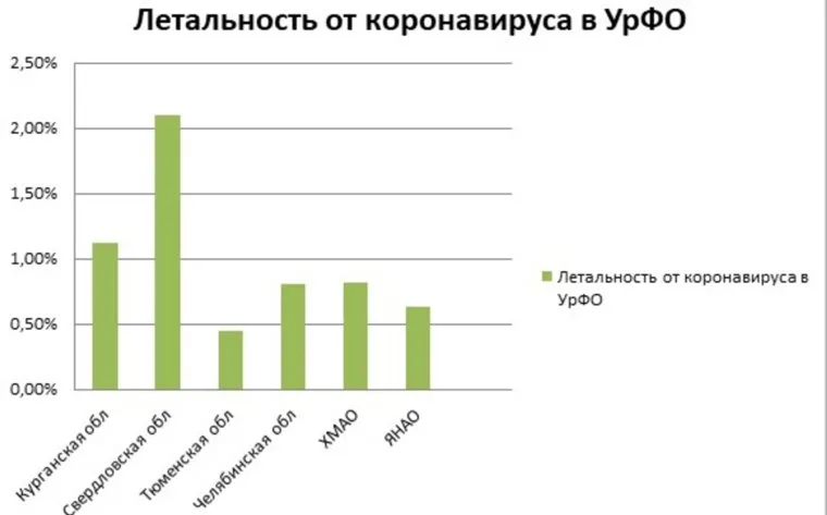 В Свердловской области, согласно данным официальной статистики, самая высокая в УрФО летальность заболевших коронавирусом — 2,1% от числа заболевших. Это превышает показатель Тюменской области более чем в четыре раза (там умерли лишь 0,45% заболевших).
