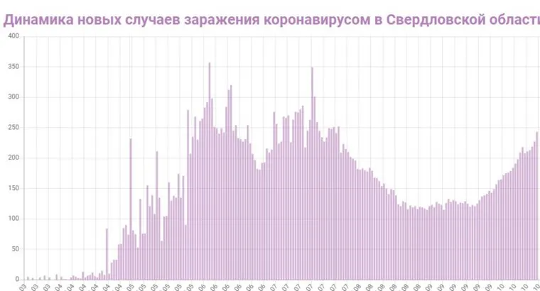 В Свердловской области продолжает расти число заболевших коронавирусом. По данным регионального штаба по борьбе с коронавирусом на 19 октября зафиксировано 249 новых случаев COVID-19. Число новых заражений стремится к пиковым значениям, которые фиксировались в конце июля. Медики прогнозируют, что это вызовет рост смертности.