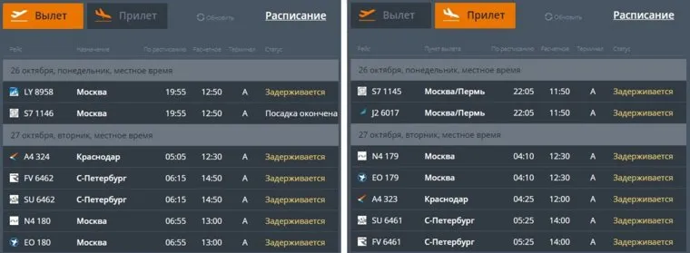 Фото: Скриншот онлайн-табло аэропорта Челябинска