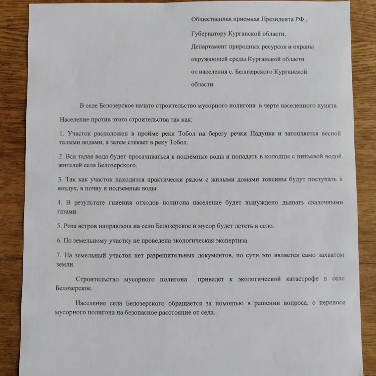 Жители села Белозерское подготовили обращение Путину