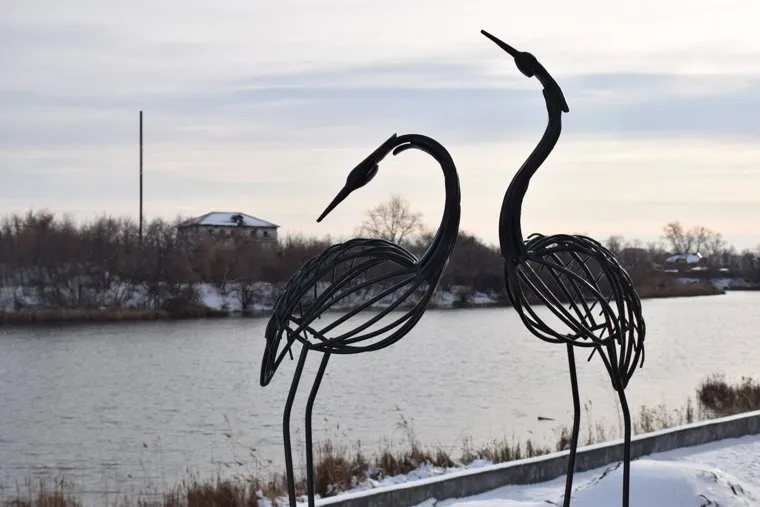 Арт-объект «Журавли» изготовили в мастерской «Ковка-дизайн». Данная фирма ранее создала фигуру коня, которая напугала некоторых местных водителей , но спустя время привлекла внимание желающих сфотографироваться .