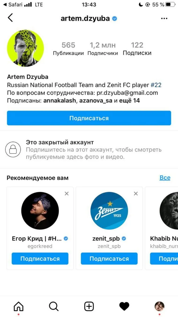 Футболист сборной России Артем Дзюба закрыл свой аккаунт в Instagram (деятельность запрещена в РФ) после того, как в сети было опубликовано его интимное видео. Теперь пользователи могут посмотреть его истории и ленту только после одобрения владельца.