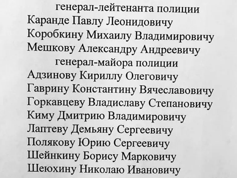 Мешков указан в документе в числе высокопоставленных силовиков из других регионов