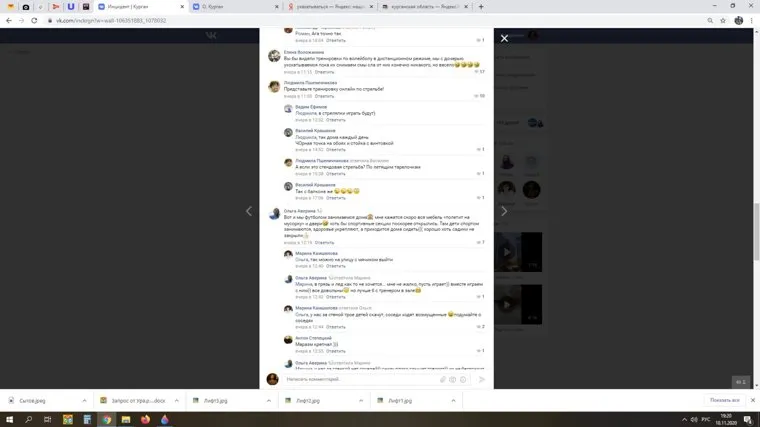 «Вы бы видели тренировки по волейболу в дистанционном режиме, мы с дочерью ухахатываемся, пока их снимаем. Смысла от них, конечно, никакого, но весело», — добавила там же пользовательница Елена Воложанина. На момент написания новости, ее комментарий поддержали 17 человек.