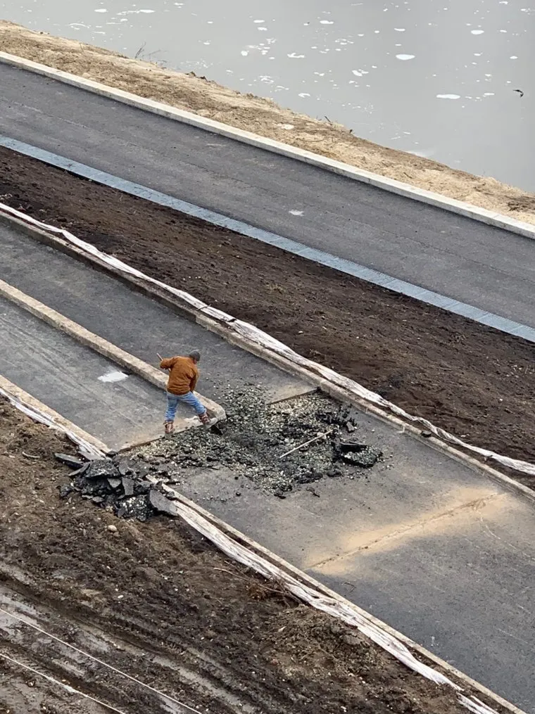 «Вчера до 12 часов ночи укладывали асфальт для того, чтобы уже в 12 часов дня его убирать», — написал пользователь Антон Борисов. Он добавил, что кадр был снят возле реки Битевки.