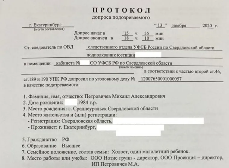 Арестован подрядчик, сдавший ФСБ главу района в Екатеринбурге. Протокол допроса