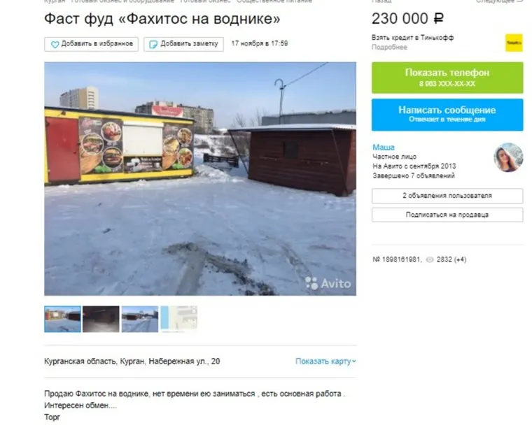 Самый дешевый объект общепита на Avito выставлен за 230 тысяч рублей