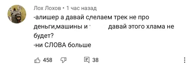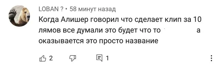 Клип рэпера Алишера Моргенштерна «Клип за 10 лямов» собрал более 30 тысяч комментариев меньше, чем за сутки. Люди восхищались подачей рекламы и отсутствием мата, смеясь над общим количеством слов в песне.