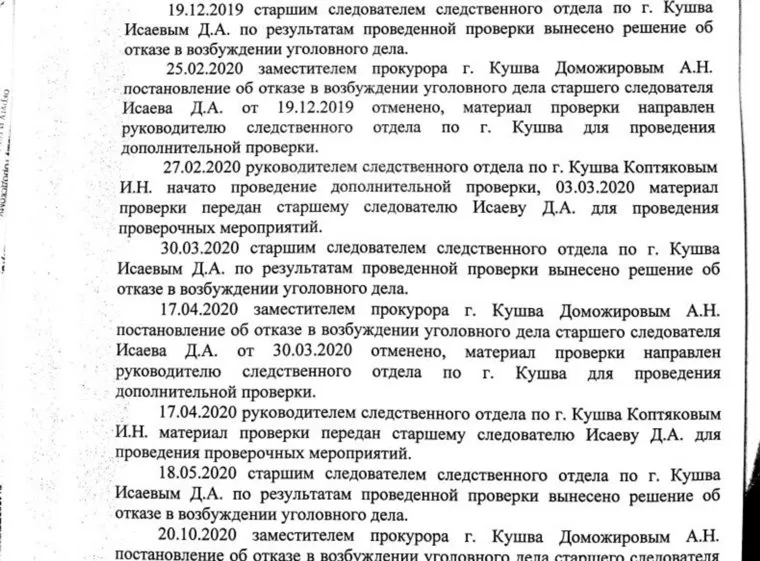 Следователи четырежды отказывали в возбуждении уголовного дела. Каждый раз прокуратура это обжалует