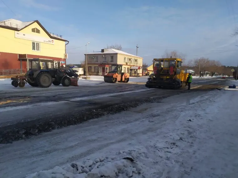 В селе Глядянском (райцентр Притобольного района Курганской области) 8 декабря рабочие уложили асфальт на снег. Об этом URA.RU рассказал читатель.