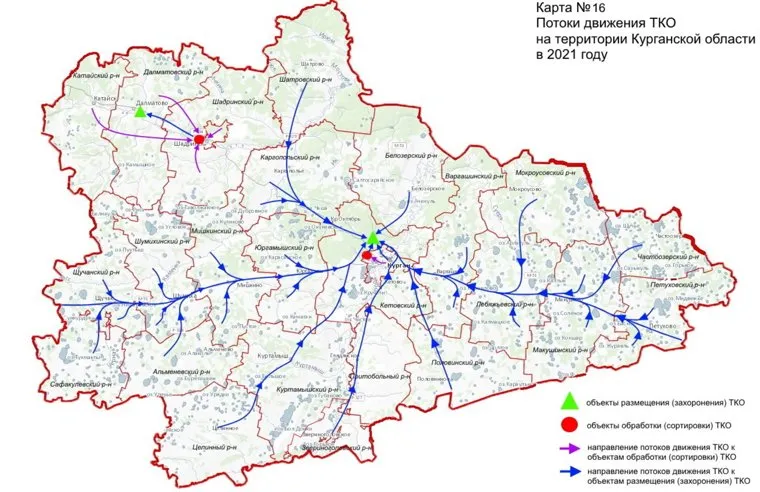 В Курганской области с января 2021 года начнет действовать новая схема размещения отходов. Под Курган на Шуховский полигон мусор повезут со всех районов региона, кроме трех. Схема размещена на сайте департамента природных ресурсов.