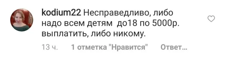 Пользователи в социальных сетях негодуют от назначения пятитысячного пособия детям до 7 лет. Кто-то считает, что нужно платить всем детям, кто-то просто заявляет, что это очень маленькая сумма.